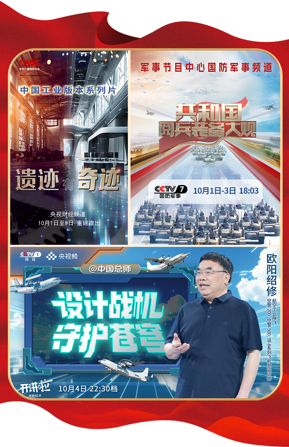 紀(jì)錄片《遺跡有奇跡》,深入探訪八個不同行業(yè)的工業(yè)遺址,展現(xiàn)中國工業(yè)發(fā)展的輝煌歷程。九三閱兵現(xiàn)場,新型察打一體無人機(jī)、空警-500預(yù)警機(jī)等硬核裝備令人振奮,《開講啦》“@中國總師”解讀中國軍工硬核實力,系列節(jié)目《共和國閱兵裝備大觀》帶你在鋼鐵洪流的轟鳴聲中見證軍工裝備的迭代升級,展示新時代中國科技創(chuàng)新帶來的大國力量!向前進(jìn),向前進(jìn),我們有信心、有底氣!