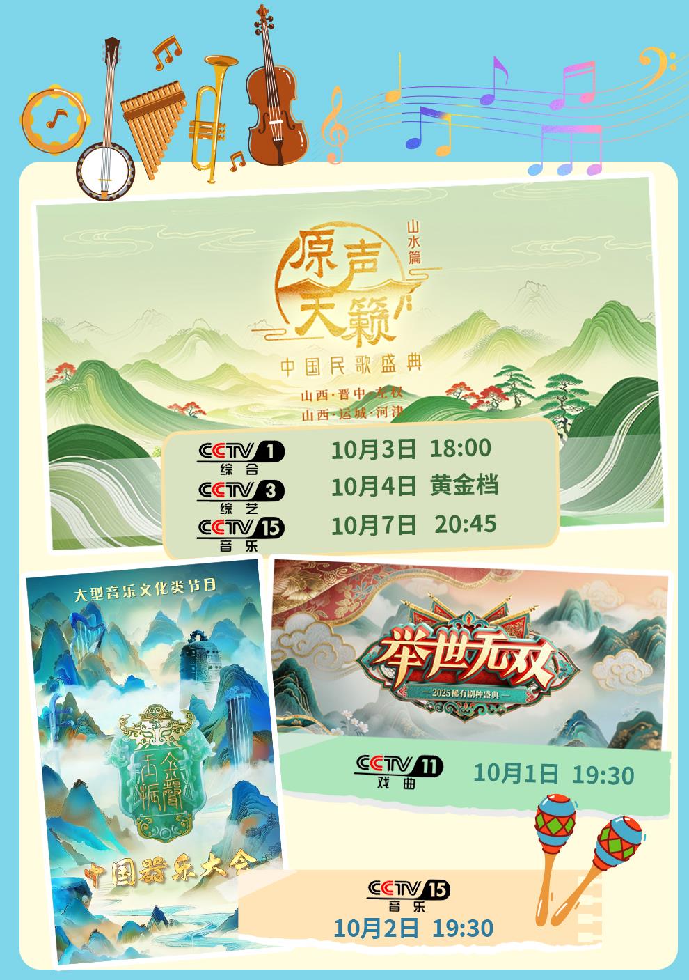 文藝節(jié)目,出新出彩!輕體量小鎮(zhèn)音樂會、稻田音樂會、河灘音樂會,《原聲天籟-中國民歌盛典》用民歌描繪山水間幸福畫卷。《金聲玉振——中國器樂大會》將賈湖骨笛、箜篌等古樂器與當(dāng)代編曲結(jié)合,奇妙組合帶來全新聽覺體驗。《舉世無雙 2025稀有劇種盛典》匯集雁北耍孩兒、湖劇、阿宮腔等三十余個稀有劇種,盡展中華戲曲百花園獨特風(fēng)采。