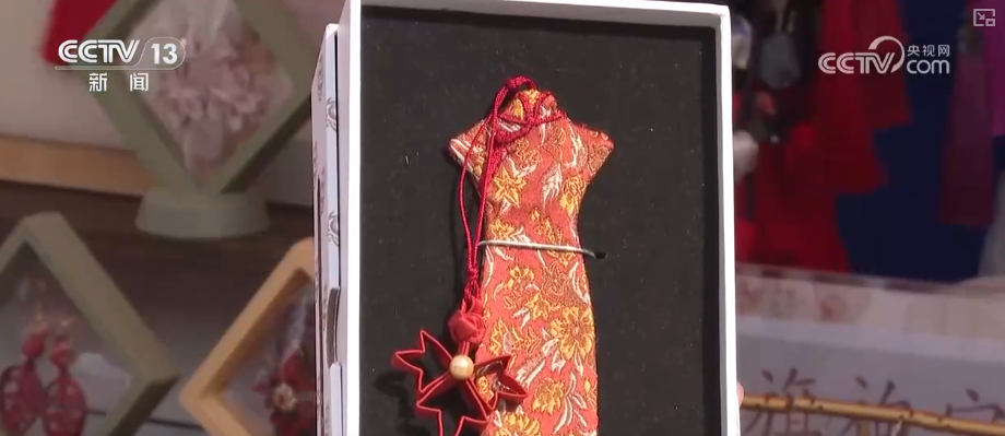 在非遺八大集市上,有許多精致的小物件,比如這枚小書簽,別看它小,可是凝結了三項非遺技藝,包括京式旗袍傳統(tǒng)制作技藝、京繡技藝,以及盤扣制作技藝,亮點多多,十分的精致。