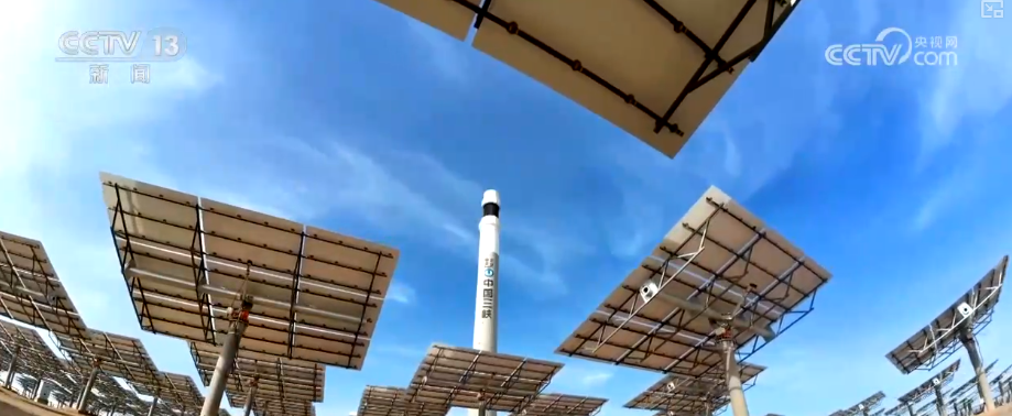 園區(qū)中,23000多面定日鏡如同一個個精準的“追光者”,通過智能控制系統(tǒng)實時追蹤太陽軌跡,將分散的太陽光集中反射到高達200多米的吸熱器上,再通過大容量熔鹽儲熱系統(tǒng),實現(xiàn)24小時連續(xù)穩(wěn)定供電。