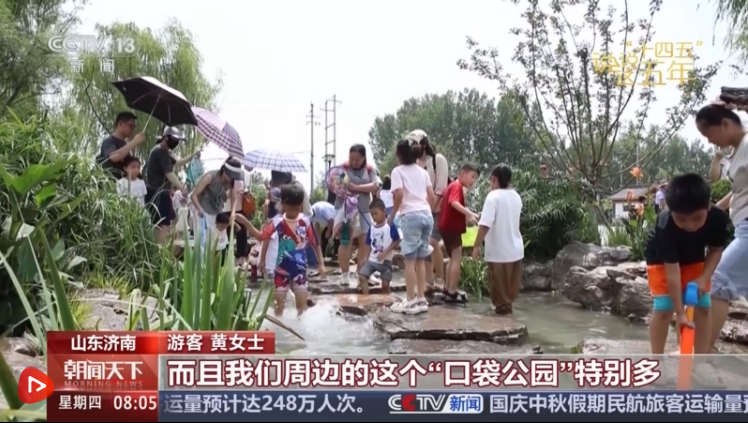 游客黃女士說,山更青了、水更美了,祖國(guó)處處的山水都很美。周邊的口袋公園特別多,方便他們鍛煉身體對(duì)老年人很有幫助。