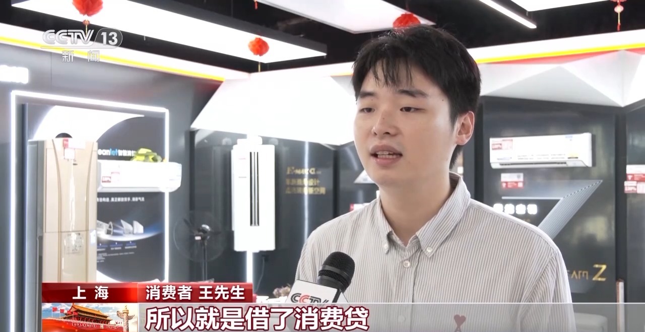 消費(fèi)者 王先生:我想一次性把家電買齊,所以借了消費(fèi)貸。有國家的補(bǔ)貼,緩解了我的資金壓力,其次就是它操作其實(shí)比較方便,比較快速地就能把我想買的都買齊。