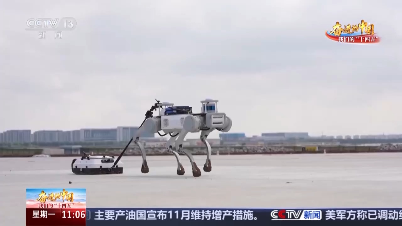 總臺記者 侯瀟揚:我身旁這臺正在勻速“邁步”的設(shè)備,就是民航業(yè)內(nèi)首臺探地雷達(dá)機器狗。它搭載設(shè)備可以一邊走一邊向地下發(fā)射雷達(dá)波,能夠有效識別3米內(nèi)的脫空、裂縫和地下管線,比人工探測效率高不少。不僅可以在既定路線內(nèi)實現(xiàn)自動化探測,就連人難到、車難行的綠化草地和土面區(qū),它也能靈活穿梭。