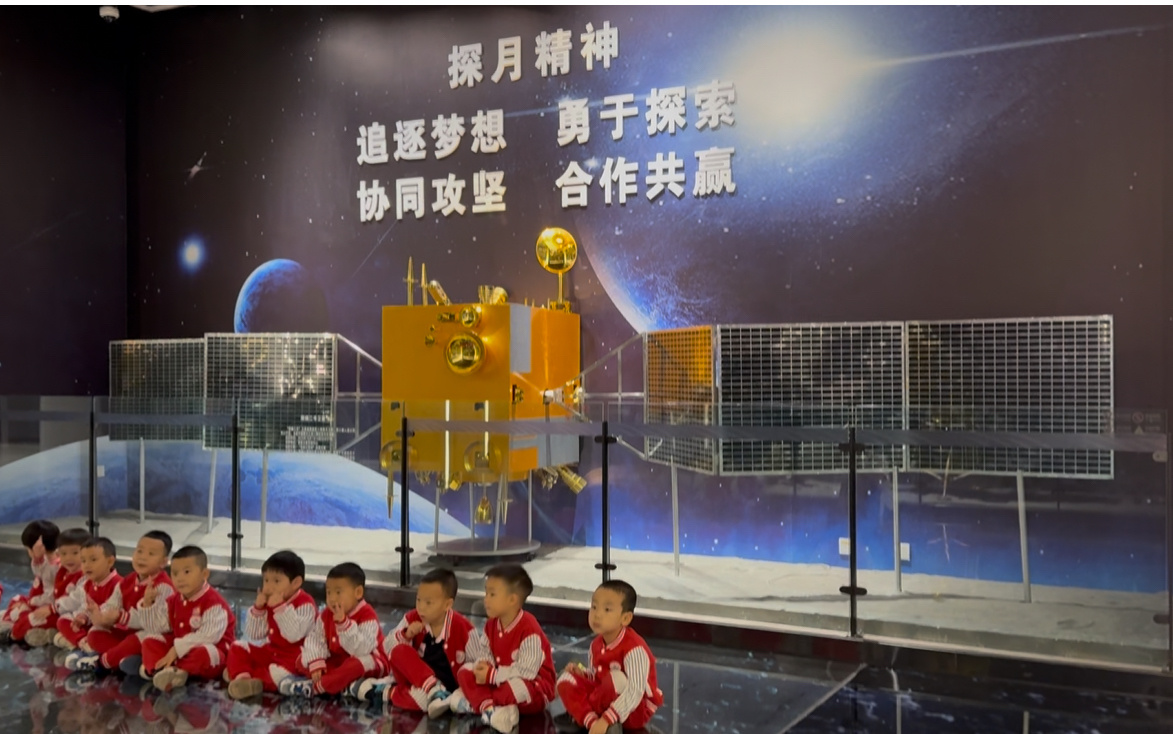 小朋友參觀航天館并合影留念(央廣網(wǎng)發(fā) 王語詩 攝)