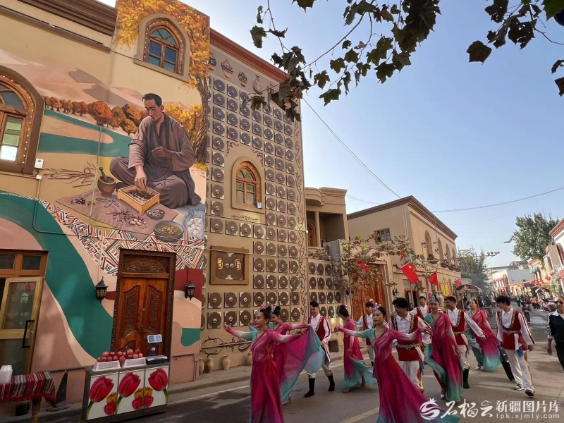 在墨玉縣,老城景區(qū)的“墻上博物館”成為游客感受文化、寄托情思的好去處。游客陳南方與愛人特意來到老街,在“在這里,向祖國致敬”的打卡點(diǎn)前合影留念?!霸缏犝f墨玉是絲路南道的重要節(jié)點(diǎn),這面墻把古商隊(duì)穿越沙漠的場景畫活了,再想想現(xiàn)在的發(fā)展,真有種‘古今對話’的感覺!”來自烏魯木齊市的游客張斌站在《絲路駝印》墻前,一邊拍照一邊感慨。