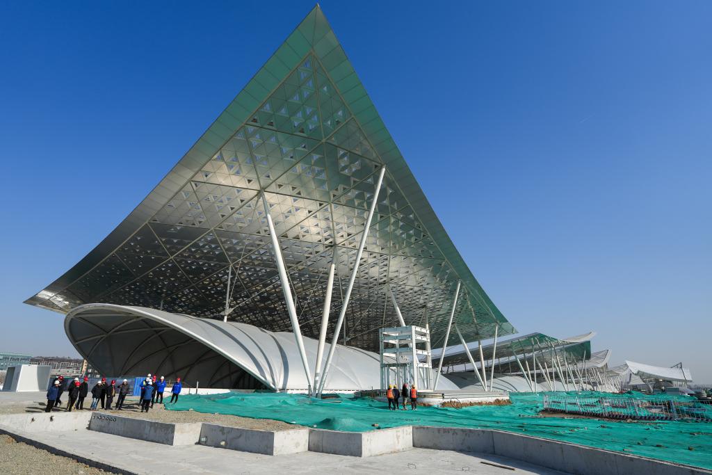 2月26日拍攝的北京城市副中心站綜合交通樞紐工程和“京帆”屋蓋。新華社記者 鞠煥宗 攝