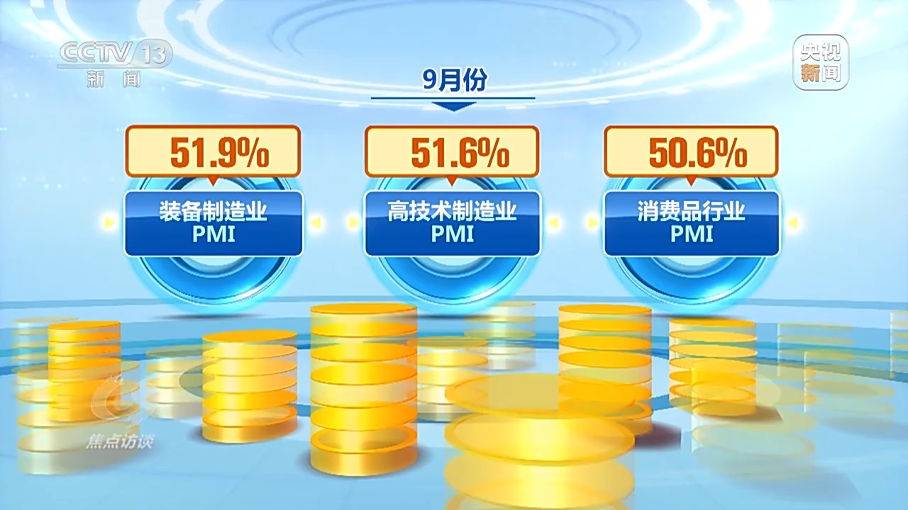 工業(yè)企業(yè)利潤的明顯改善釋放的是市場需求在增加、價格在回升等積極信號。類似的積極信號,我們在制造業(yè)采購經(jīng)理指數(shù)(PMI)中也能看到。9月份,裝備制造業(yè)、高技術(shù)制造業(yè)和消費(fèi)品行業(yè)PMI分別為51.9%、51.6%和50.6%,均位于擴(kuò)張區(qū)間。生產(chǎn)經(jīng)營活動預(yù)期指數(shù)為54.1%,連續(xù)三個月回升。