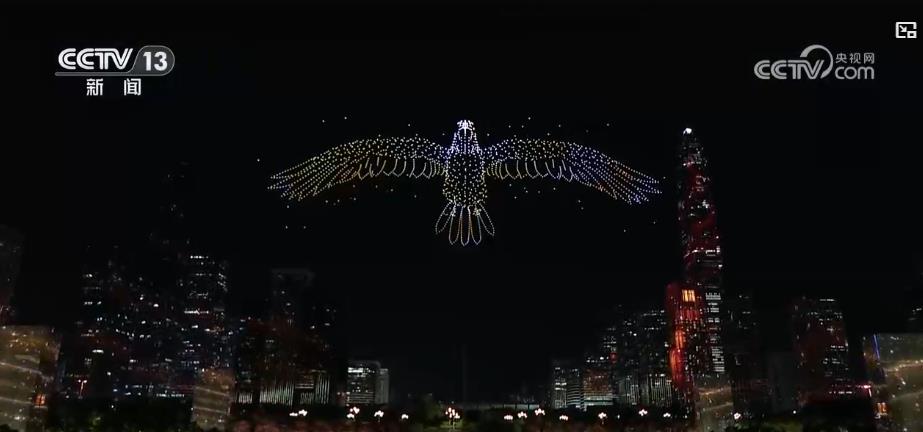 夜幕降臨,一場無人機創(chuàng)意秀在深圳天空徐徐展開。12000架無人機騰空而起,獻上了一場科技與藝術(shù)共舞的視覺盛宴。