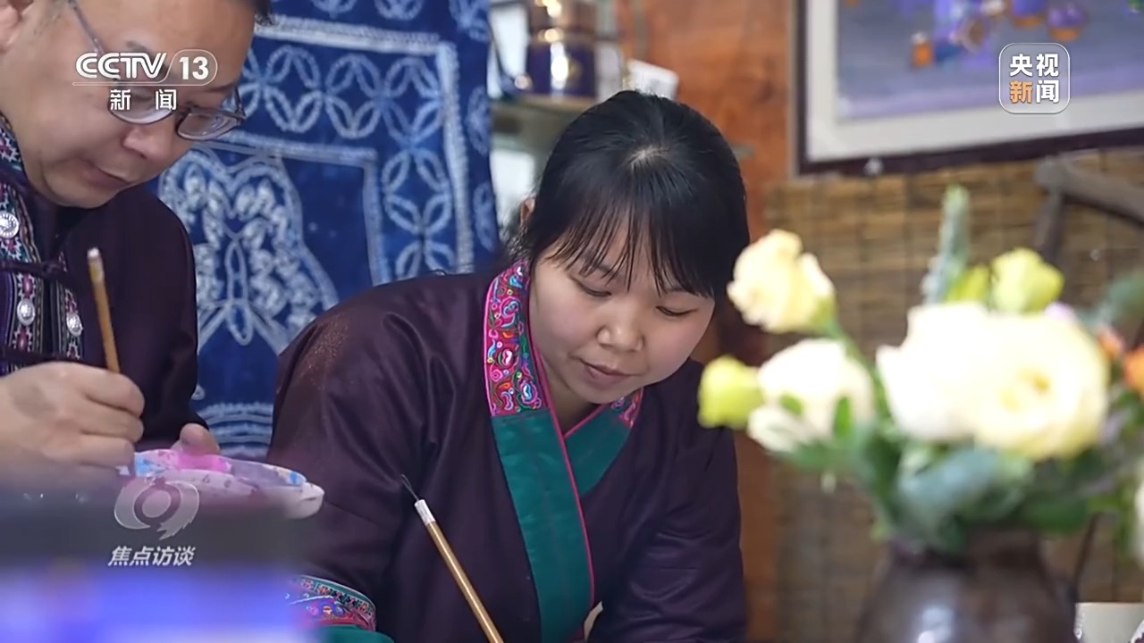 陳美美:我還記得我女兒一直問我,媽媽天上是什么?我說是飛機(jī)。你努力讀書,我以后要跟著你一起去坐飛機(jī)。我沒想到我女兒還沒長大,我就因?yàn)楫嫯嬜w機(jī)去了北京。真的畫畫改變了我,也改變了我們家鄉(xiāng)。