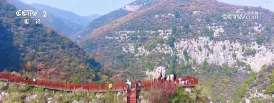 央視網(wǎng)消息:深秋時(shí)節(jié),位于河南焦作市中站區(qū)趙莊村的窄門峽谷,滿山紅葉燦若云霞,層林盡染美如畫卷,吸引游客駐足打卡留念。
