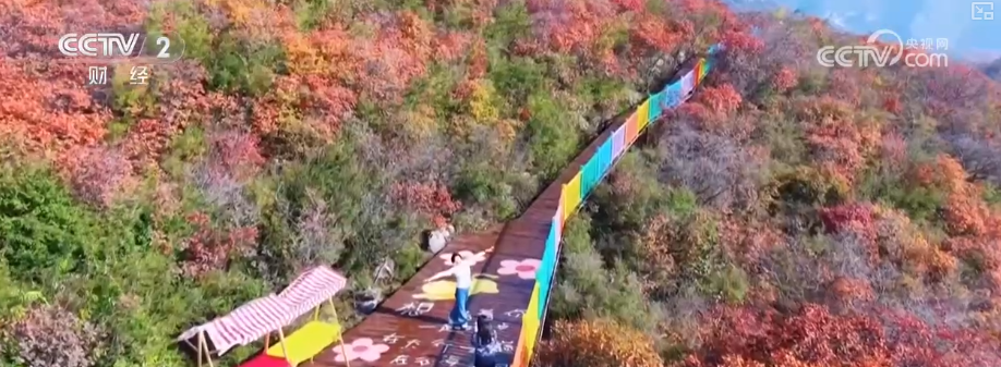 這里新落成的五彩步道全長(zhǎng)1300米,沿山脊蜿蜒鋪展,如一條絢爛彩帶鑲嵌于山間,每百米便有一處景致,步移景異。游客既能賞紅葉爛漫、覽太行雄姿,亦可于登高望遠(yuǎn)處邂逅一場(chǎng)秋日視覺(jué)盛宴。