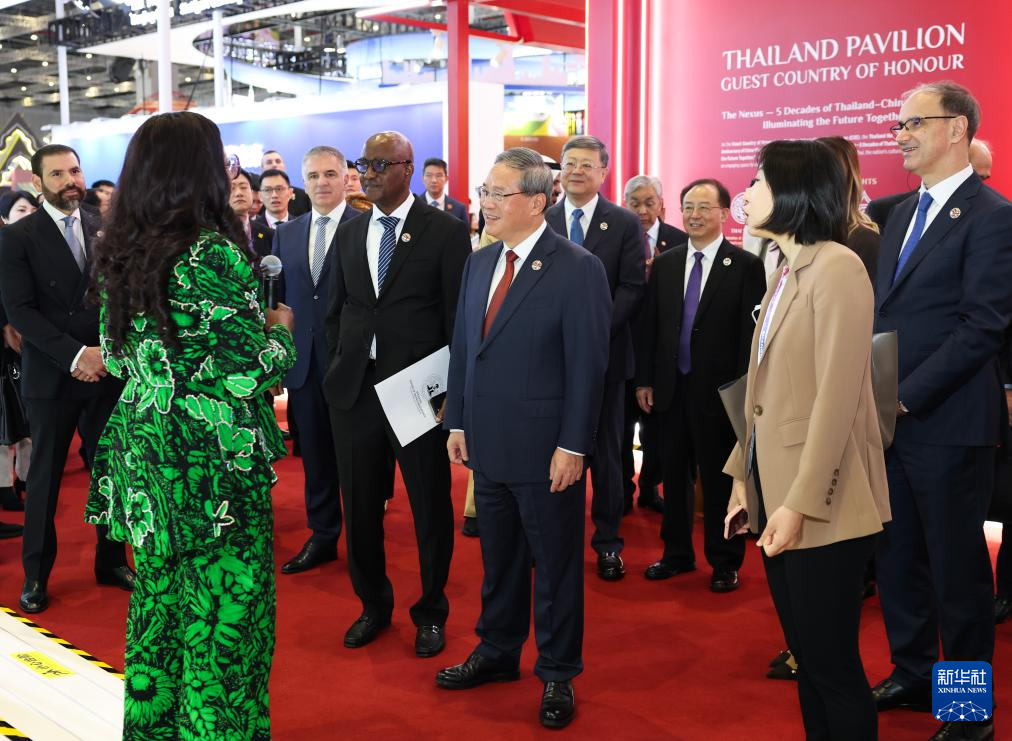 開幕式前,李強參觀了企業(yè)展。開幕式后,李強同與會外國領(lǐng)導(dǎo)人共同巡館。