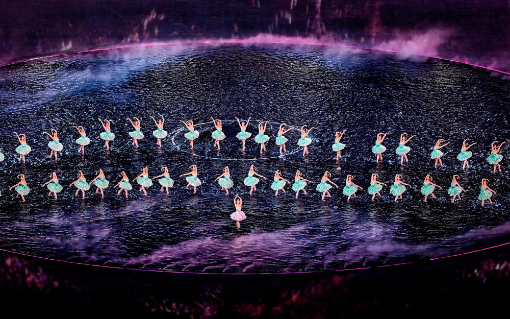 郎昆介紹,開幕式在空間敘事、藝術(shù)表達(dá)等方面都體現(xiàn)了三地文化交融。主舞臺(tái)直觀呈現(xiàn)“同心圓”造型,環(huán)形舞臺(tái)周邊是廣闊的水面,運(yùn)用前沿的“虛實(shí)結(jié)合”技術(shù),讓珠江、維多利亞港、伶仃洋的水波在場(chǎng)地中交匯奔流。這不僅是地理水系的相連,更是三地同源共流的文化血脈與手足親情的象征。