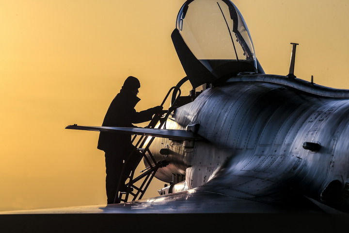 朝陽從地平線躍起,晨曦照耀著列隊行進(jìn)的飛行員們,一次新的起飛即將來臨。