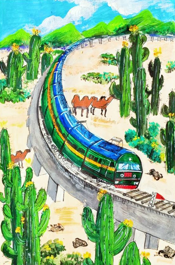 回家的路上,我翻著爸爸收藏的老照片:黑白照片里是詹天佑設(shè)計(jì)的京張鐵路;彩色照片中,嶄新的京張高鐵穿越居庸關(guān)隧道,智能列車自動(dòng)駕駛,外國(guó)人都豎起大拇指。爺爺常說(shuō)“鐵路是國(guó)家的脊梁”,如今,這脊梁挺得筆直,載著14億人的夢(mèng)想飛馳。