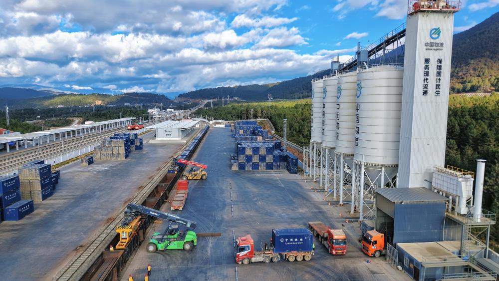 這是11月21日拍攝的云南迪慶藏族自治州小中甸站貨場(無人機照片)。
