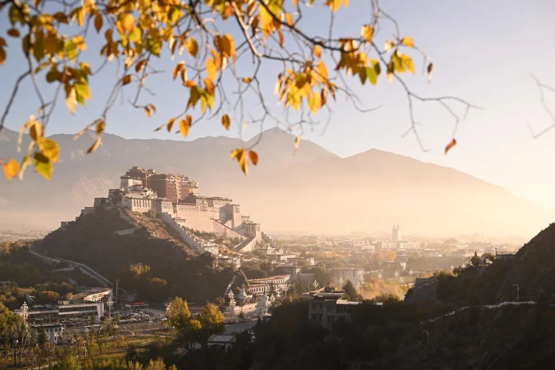 2025年10月22日清晨,薄霧尚未散盡,西藏拉薩團(tuán)結(jié)公園的黃葉與布達(dá)拉宮相映成趣,勾勒出高原秋日的獨(dú)特畫(huà)卷。中新社記者 貢嘎來(lái)松 攝