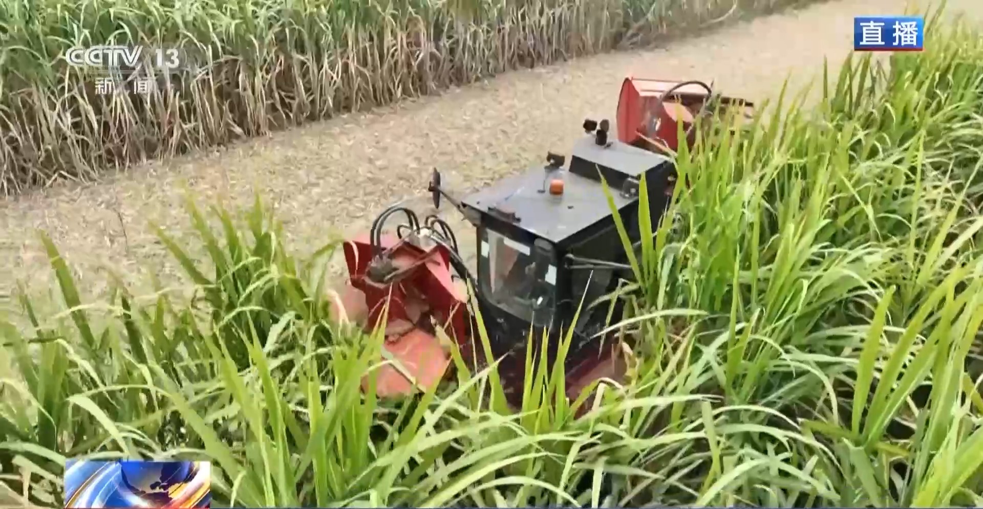 總臺記者 鄧君洋:我現(xiàn)在位于廣西來賓國家現(xiàn)代農(nóng)業(yè)產(chǎn)業(yè)園的一處糖料蔗基地。在來賓,聯(lián)合收割機從2014年開始就使用,比較適用于地形平坦、種植面積大的甘蔗基地。