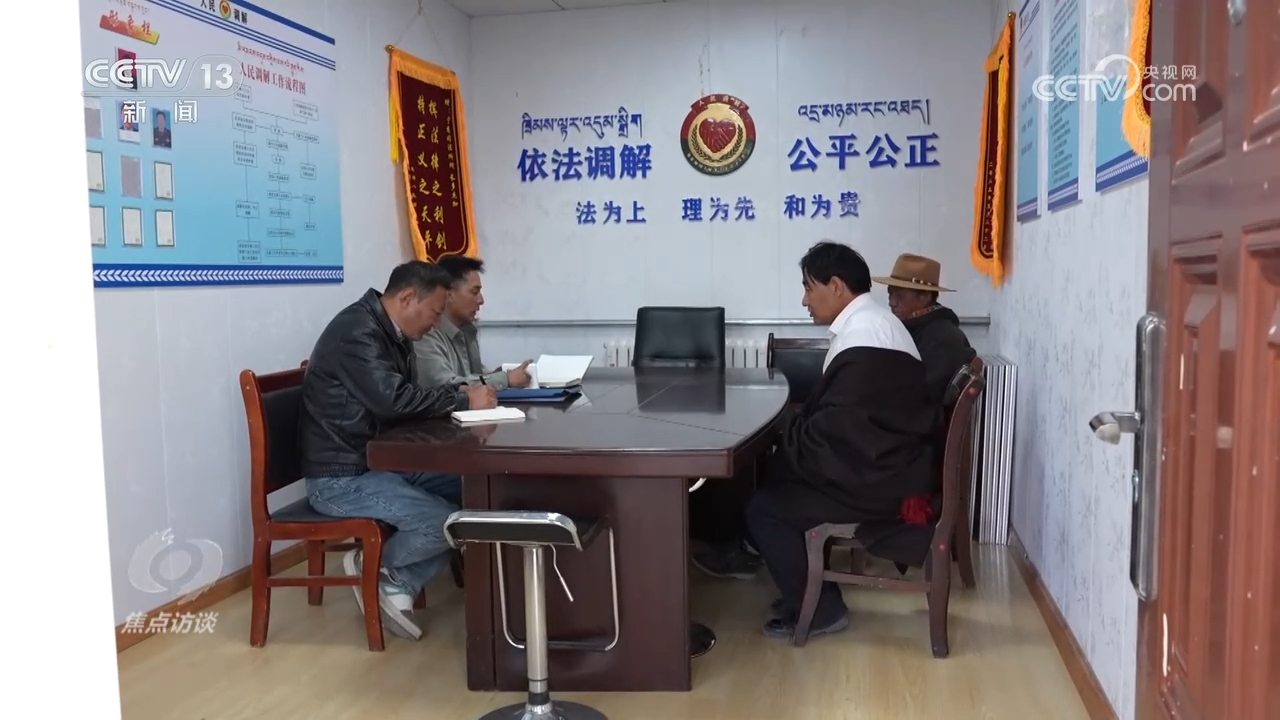在青海澤庫縣寧秀司法所的調(diào)解室里,“法律明白人”索南才旦正在調(diào)解兩名牧民的牛羊買賣合同糾紛。