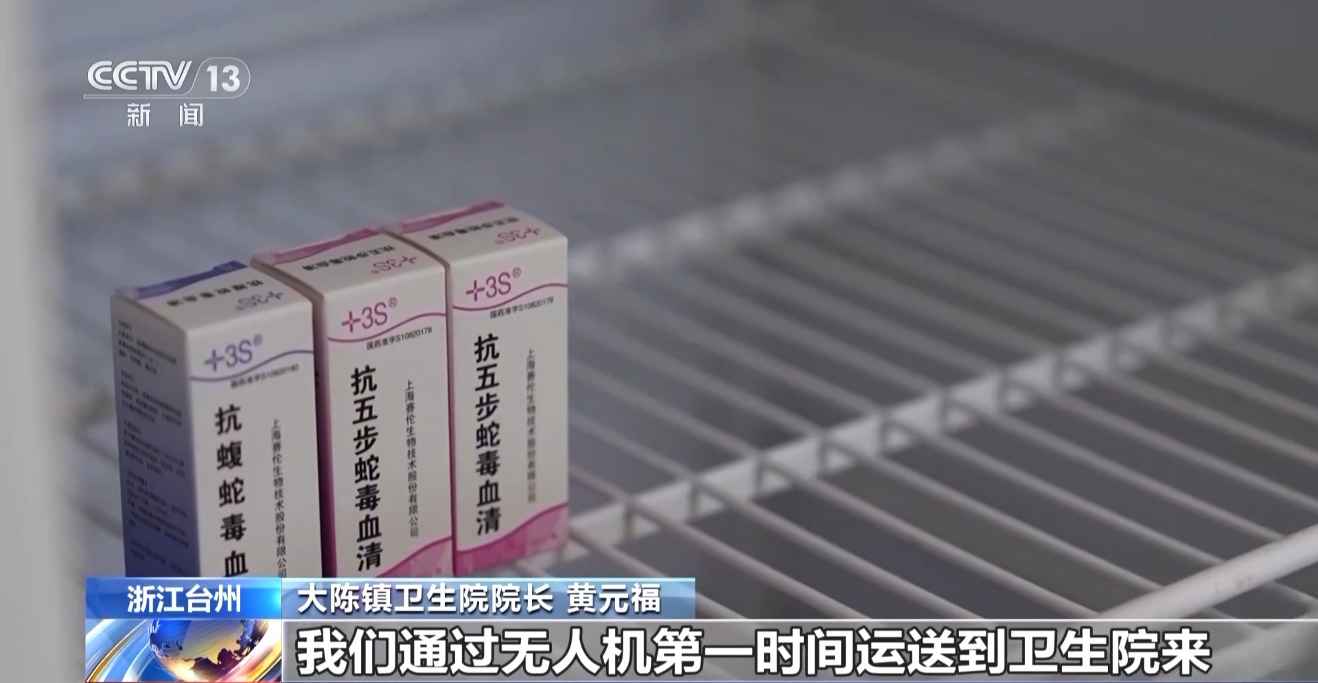 大陳鎮(zhèn)衛(wèi)生院院長(zhǎng) 黃元福:像這些蛇抗毒血清,還有一些疫苗,我們通過(guò)無(wú)人機(jī)第一時(shí)間運(yùn)送到衛(wèi)生院來(lái),為緊急病人的救治爭(zhēng)取了寶貴時(shí)間。
