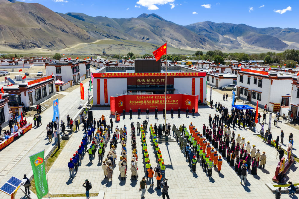 2025年8月15日,定日縣長所鄉(xiāng)森嘎村舉行“定日6.8級地震災后恢復重建民房首批入住儀式”(無人機照片)。