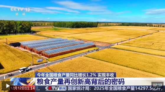 農(nóng)業(yè)農(nóng)村部種植業(yè)管理司副司長 呂修濤:2025年,我國糧食生產(chǎn)實現(xiàn)高位增產(chǎn)、再創(chuàng)新高。從季節(jié)看,主要增在秋糧;從區(qū)域看,主要增在東北、西北;從作物看,主要增在玉米。