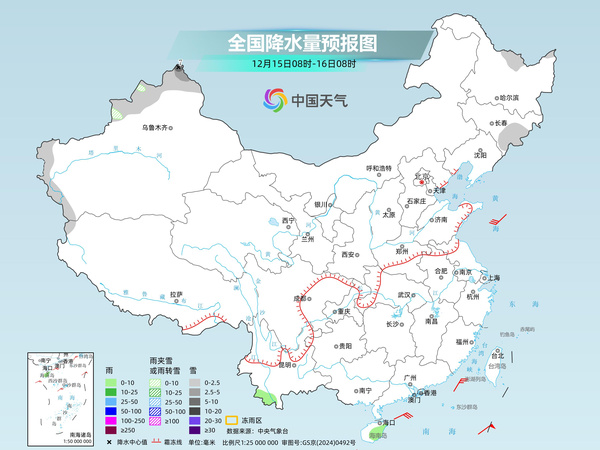 明天,黑龍江東北部、吉林東部、新疆北部和南疆西部山區(qū)等地部分地區(qū)有小雪或雨夾雪,其中,新疆北疆北部局地有中到大雪。云南西南部、海南島中東部等地部分地區(qū)有小雨。