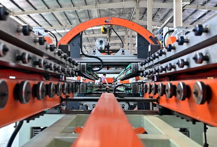 2025年6月18日,河北省唐山市蘆臺(tái)經(jīng)濟(jì)開發(fā)區(qū)一家采暖設(shè)備企業(yè)的工人在生產(chǎn)線上工作。新華社記者 楊世堯 攝