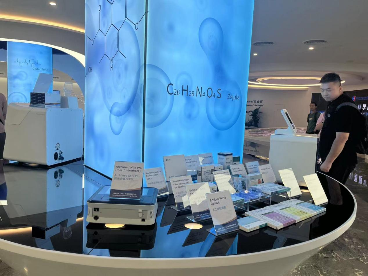 中關(guān)村生命科學(xué)園展廳內(nèi),陳列著多款創(chuàng)新醫(yī)療器械。 新京報(bào)貝殼財(cái)經(jīng)記者丁爽 攝