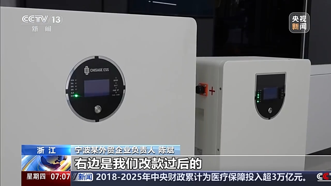 寧波某外貿(mào)企業(yè)負(fù)責(zé)人 陳斌:左邊的這個(gè)產(chǎn)品是我們?cè)瓉淼呐f產(chǎn)品,右邊是我們改款過后的,相比原來的產(chǎn)品,新產(chǎn)品重量減少了15%左右,體積減小了25%左右,它的能量密度就更高了,在市場上就具有更好的競爭力。