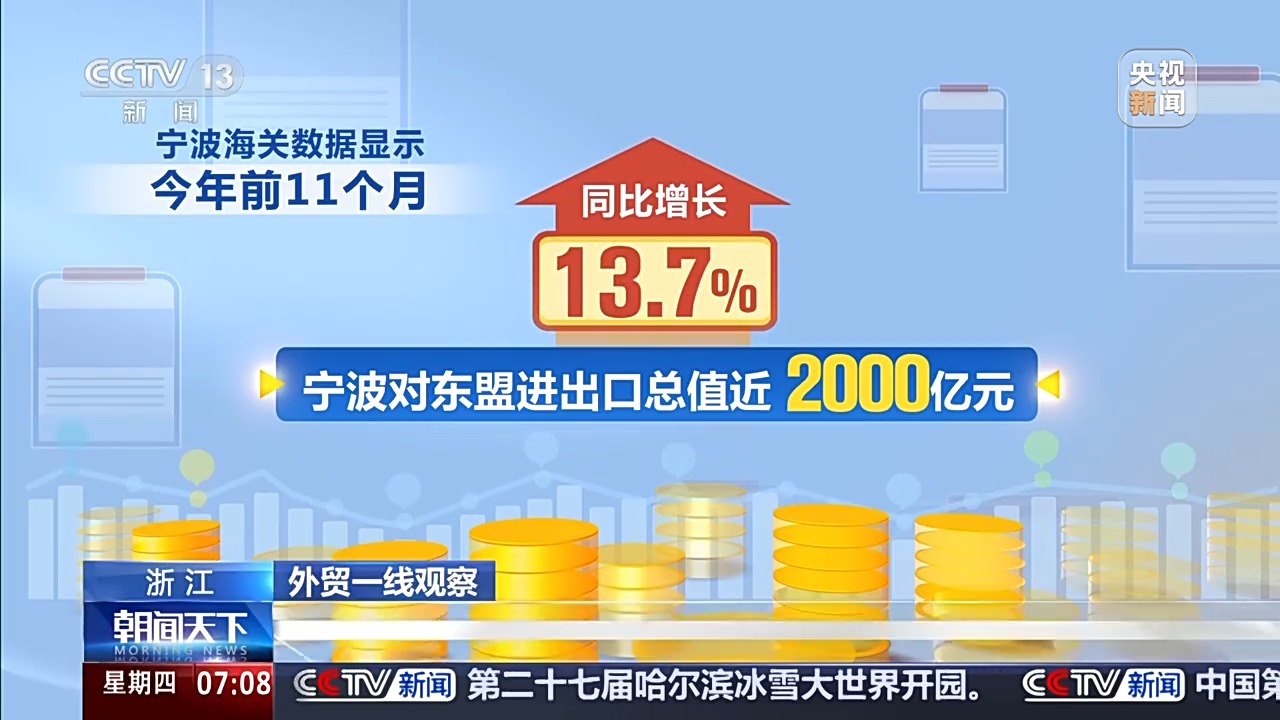 寧波海關(guān)數(shù)據(jù)顯示,今年前11個(gè)月,寧波對(duì)東盟進(jìn)出口總值近2000億元,同比增長13.7%。其中,機(jī)電產(chǎn)品作為寧波對(duì)東盟出口商品中的主力軍,前11個(gè)月出口了近600億元,增長22.9%。
