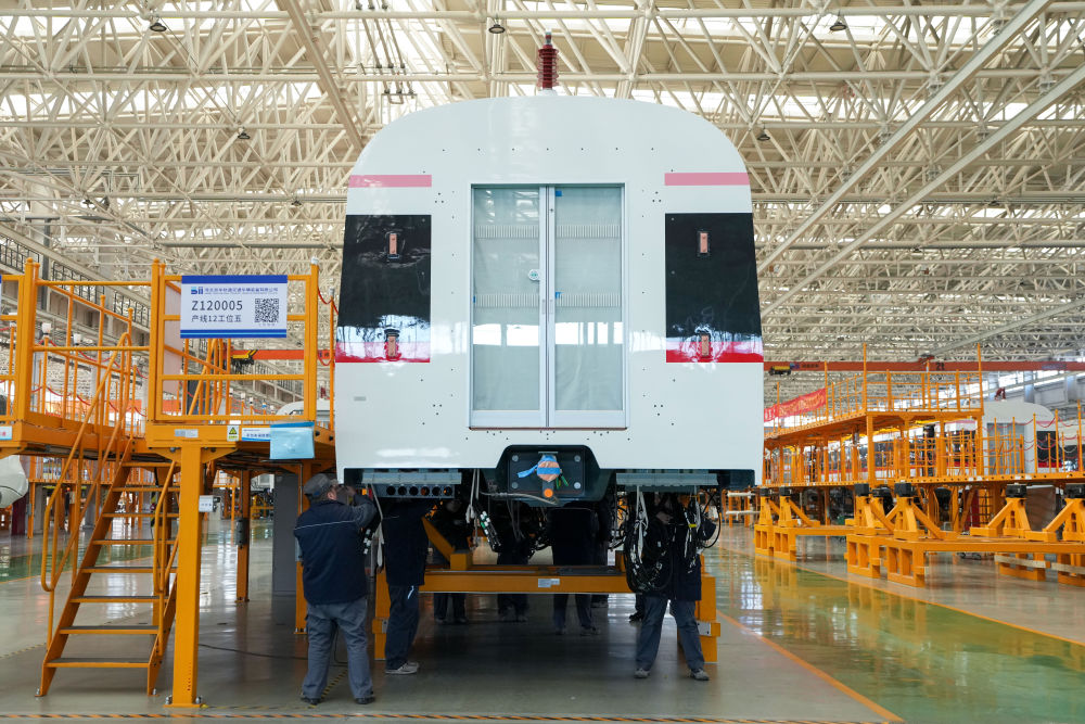 在京投裝備河北京車智能制造基地,工作人員在地鐵列車總裝車間內(nèi)工作(2025年2月14日攝)。京投裝備河北京車智能制造基地位于河北省保定市,采用“北京研發(fā)+河北制造” 模式運(yùn)營,是貫徹京津冀協(xié)同發(fā)展戰(zhàn)略的重要項(xiàng)目。新華社記者 鞠煥宗 攝