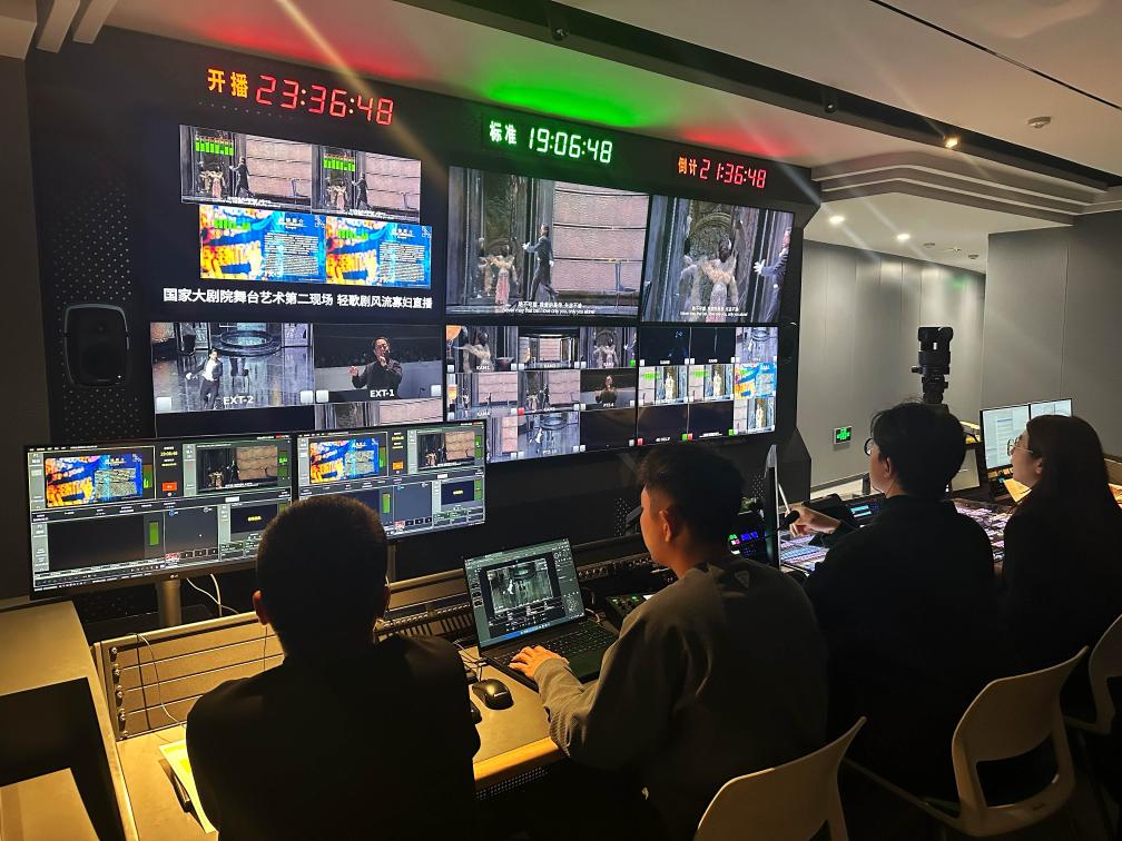 圖為國(guó)家大劇院舞臺(tái)藝術(shù)“第二現(xiàn)場(chǎng)”直播導(dǎo)播間。新華社記者楊淑君攝