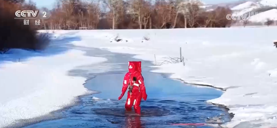 在內(nèi)蒙古還有一項(xiàng)獨(dú)特的極寒體驗(yàn)——“躺冰”。零下40攝氏度的極寒環(huán)境中,吉爾布干河因地?zé)嵝纬闪霜?dú)特的不凍河景觀。依托這一獨(dú)特景觀,當(dāng)?shù)赝瞥隽恕疤杀斌w驗(yàn),在安全員與救生員的全程保障下,游客身著專業(yè)抗寒服漂浮于冰河之中,在雪山與霧凇環(huán)繞間感受極寒中的美景。