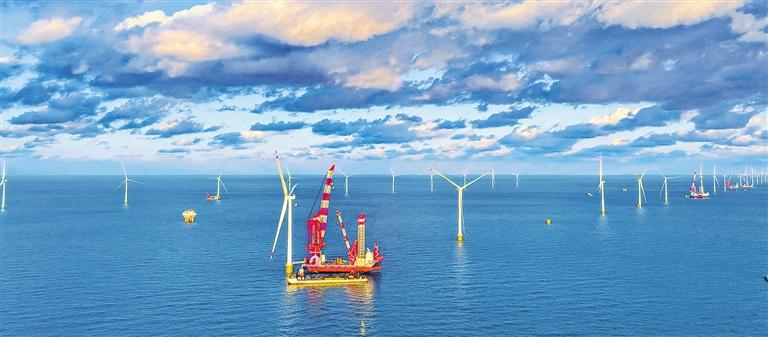 山東能源集團(tuán)新能源集團(tuán)有限公司投資建設(shè)的渤中A、B兩個(gè)場(chǎng)址90萬(wàn)千瓦海上風(fēng)電場(chǎng)。2022年12月底,該項(xiàng)目實(shí)現(xiàn)全容量并網(wǎng)發(fā)電。公振普攝(中經(jīng)視覺)
