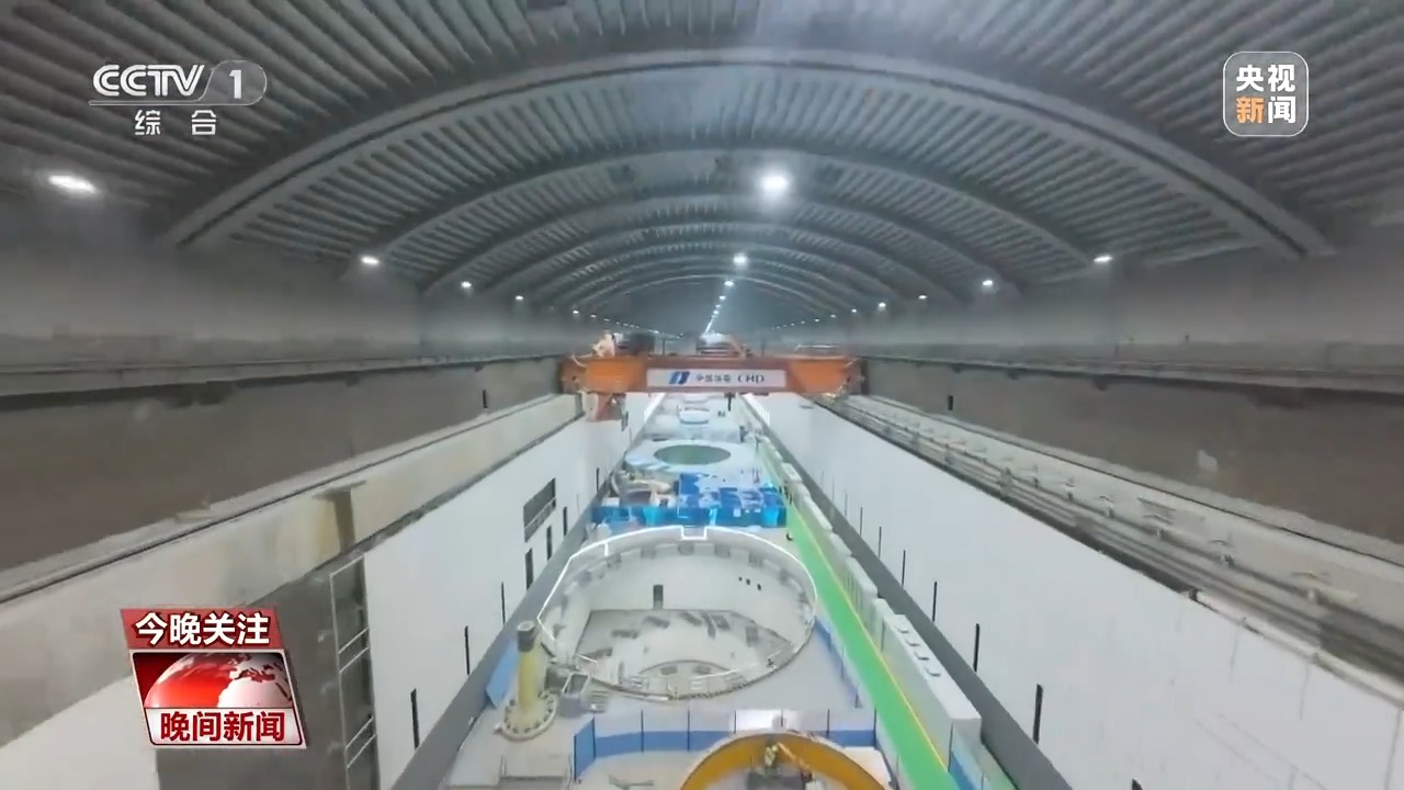 水電站究竟是如何發(fā)電的?記者身后就是發(fā)電機(jī)組最關(guān)鍵部件之一的轉(zhuǎn)輪,澎湃的高壓水流從190米的高處沖擊下來,推動(dòng)轉(zhuǎn)輪高速旋轉(zhuǎn)。它1分鐘通過的水量近2萬立方米,能夠灌滿大概8個(gè)標(biāo)準(zhǔn)游泳池,可滿足超過4萬個(gè)三口之家一年的用電需求。