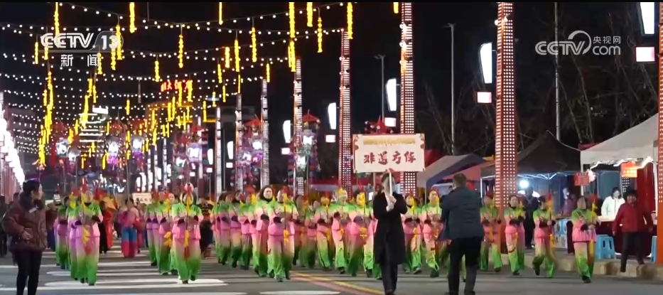 向舞臺(tái)走去的是非遺方陣從前到后分別是錢桿舞、花燈戲,以及高矮人舞這三個(gè)節(jié)目都是余慶當(dāng)?shù)氐馁F州省級(jí)非遺。每當(dāng)逢年過節(jié)的時(shí)候,當(dāng)?shù)厝罕姸紩?huì)打扮一番來到街頭,向周圍的觀眾們送去節(jié)日的祝福。