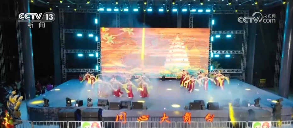賞完了冰雕霧凇,大家可能已經(jīng)聽到了現(xiàn)場(chǎng)熱鬧的音樂聲,此刻,迎接新年的預(yù)熱演出已經(jīng)開場(chǎng),演員們身著藏族服飾跳起歡快的鍋莊舞,舞蹈和歌聲中滿是對(duì)新年的喜悅與期待。