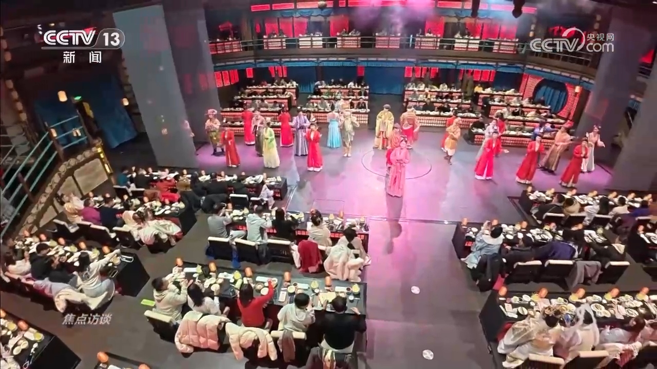《清明上河·宋宴》是全國(guó)首個(gè)宋文化沉浸式餐秀,通過(guò)“宴席+演藝+科技”的創(chuàng)新形式,讓游客化身北宋汴京雅士,跟著宋代名人的腳步風(fēng)雅入宴。