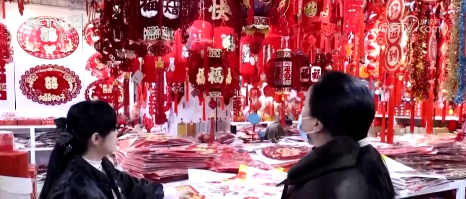 琳瑯滿目的賀歲商品營造出了濃厚的新年氛圍,不論是經(jīng)典的傳統(tǒng)樣式,還是造型新穎的掛件、創(chuàng)意玻璃貼等,銷量都有所增長(zhǎng)。