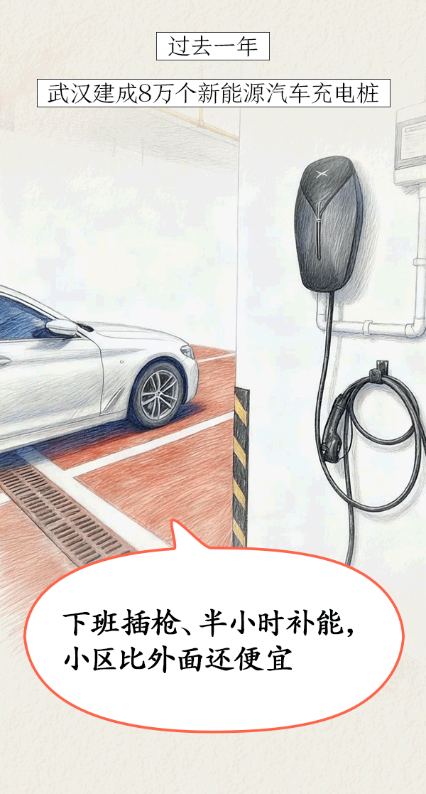 過去一年,武漢新增20.59萬個停車位,建成8萬個新能源汽車充電樁,將“續(xù)航焦慮”化解于市民家門口。
