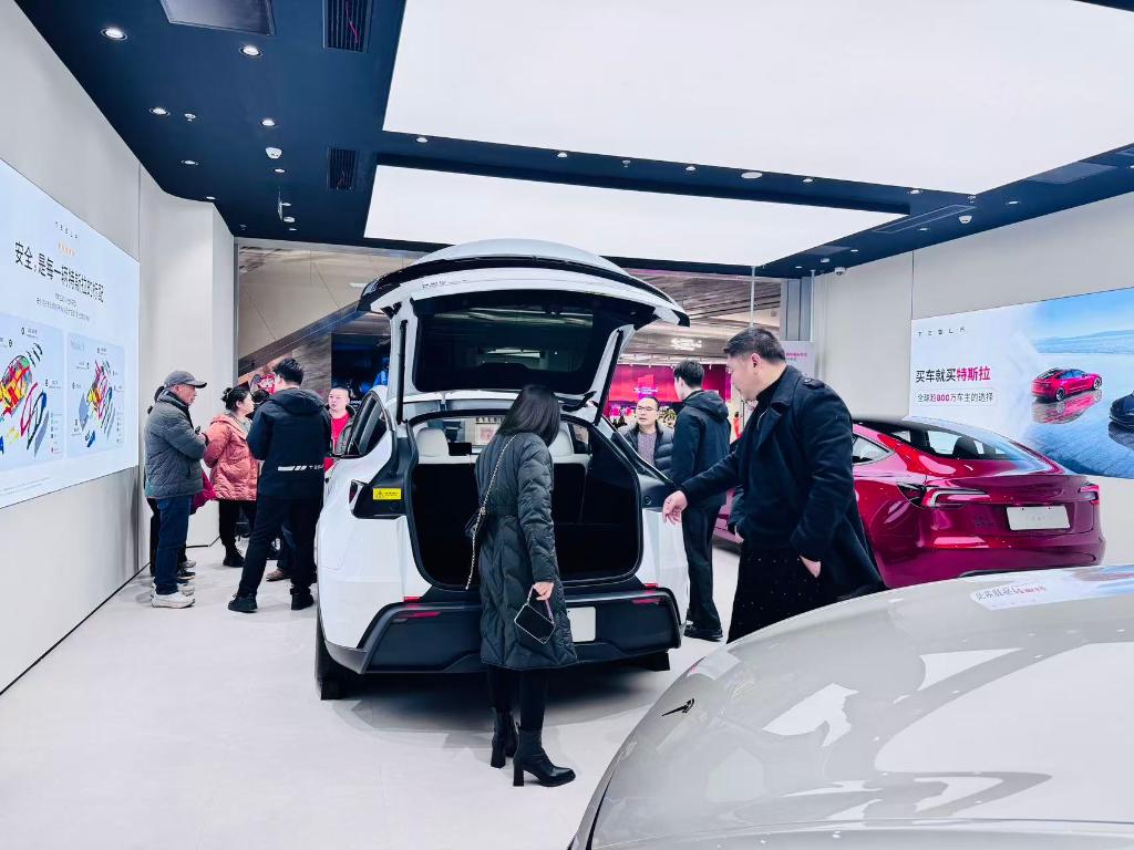 2026年1月6日,市民在武漢武昌萬(wàn)象城內(nèi)一家特斯拉門店看車。新華社記者 龔聯(lián)康 攝