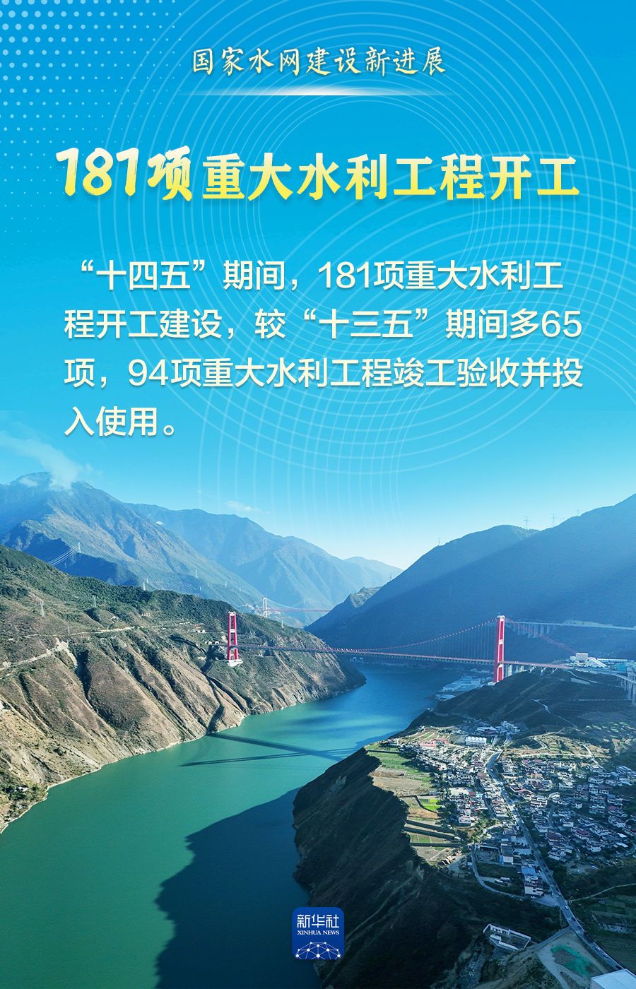 江河安瀾,治水興邦?!笆奈濉逼陂g,全國完成水利建設(shè)投資5.68萬億元、181項重大水利工程開工建設(shè)、國家水網(wǎng)覆蓋范圍占國土面積的比例達80.3%……一項項豐碩成果,既勾勒出清水綠岸、魚翔淺底的生態(tài)畫卷,更織密守護萬家燈火的水安全保障網(wǎng),為經(jīng)濟社會高質(zhì)量發(fā)展注入強勁動能。