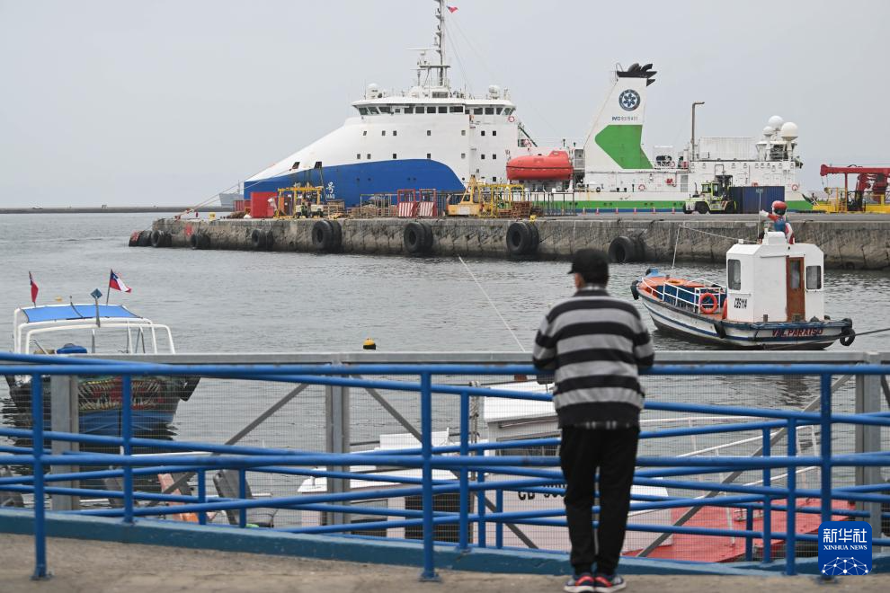 這是1月19日拍攝的停靠于智利中部瓦爾帕萊索港的中國“探索一號”科考船。新華社發(fā)(豪爾赫·比列加斯攝)