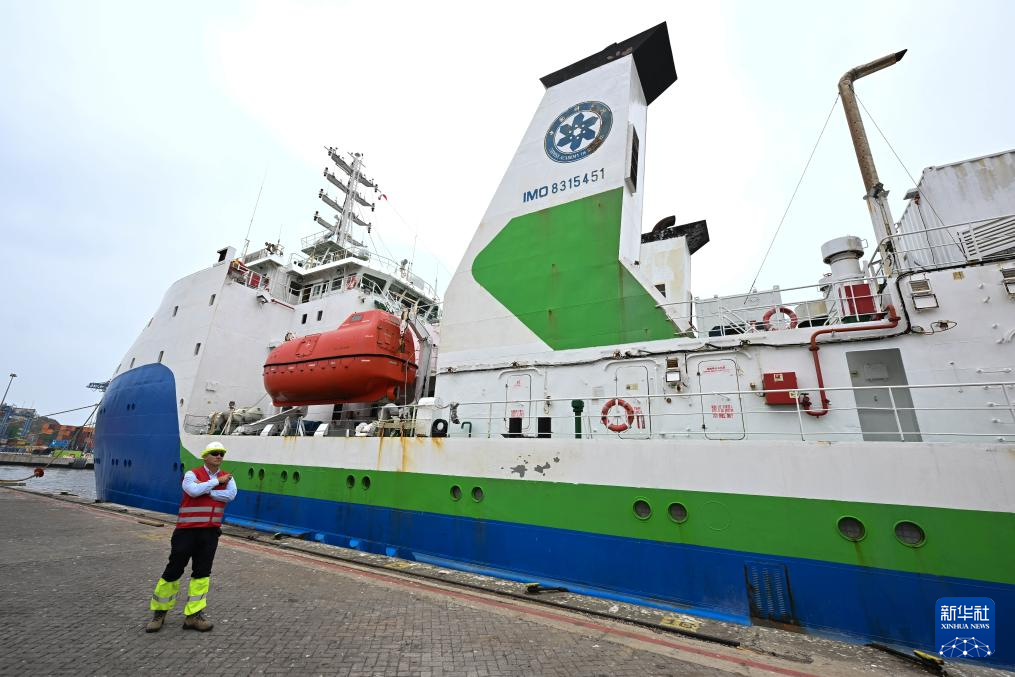 這是1月19日拍攝的??坑谥抢胁客郀柵寥R索港的中國“探索一號”科考船。新華社發(fā)(豪爾赫·比列加斯攝)