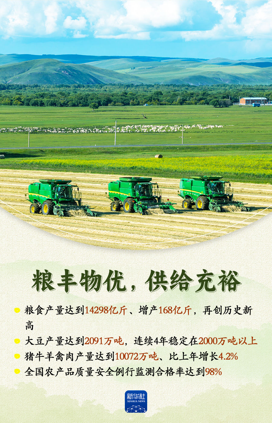 國務(wù)院新聞辦公室22日舉行新聞發(fā)布會,農(nóng)業(yè)農(nóng)村部相關(guān)負責人介紹加快農(nóng)業(yè)農(nóng)村現(xiàn)代化,扎實推進鄉(xiāng)村全面振興有關(guān)情況。2025年,我國農(nóng)業(yè)農(nóng)村發(fā)展保持穩(wěn)中有進、穩(wěn)中向好的勢頭,為推動經(jīng)濟社會高質(zhì)量發(fā)展提供了基礎(chǔ)支撐。跟隨這組海報,一起來看。
