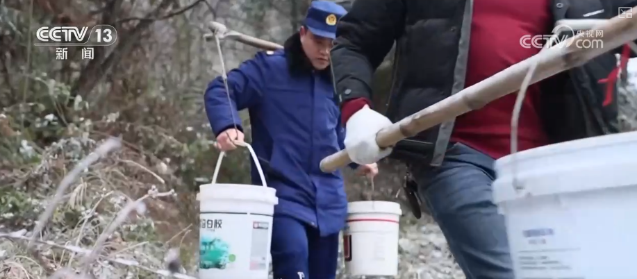 自1月19日出現(xiàn)低溫天氣以來,印江縣沙子坡鎮(zhèn)天星村已被冰雪覆蓋兩天,最低氣溫降至-5℃。該村16個(gè)村民組均位于海拔900米以上的山區(qū),日常生活用水依靠36口水池集中供應(yīng)。持續(xù)低溫導(dǎo)致通往村民家的供水管道凍結(jié),同時(shí)村內(nèi)道路結(jié)冰,村民生活用水受到影響。得知這一情況后,當(dāng)?shù)劓?zhèn)村干部與消防站人員迅速組成抗凝凍應(yīng)急隊(duì),前往水池取水并挑送至村民家中。