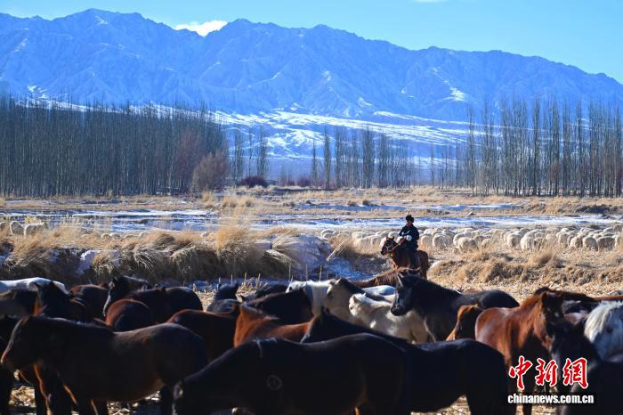 寒冬時節(jié),中新社、中新網(wǎng)記者走進甘肅省酒泉市肅北縣黨城灣鎮(zhèn)浩布勒格村,該村年輕的養(yǎng)馬人其烏摳每天騎馬去草場給馬匹拉水、投喂飼料。閑暇時,他還會使用無人機觀察馬匹的動態(tài)行蹤,通過網(wǎng)絡(luò)平臺分享自家馬兒的視頻。