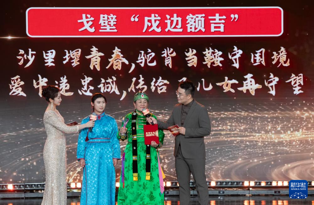 1月28日,由新華社主辦的“中國網(wǎng)事·感動2025”公益盛典暨年度頒獎典禮在北京舉行,活動揭曉“中國網(wǎng)事·感動2025”十大年度網(wǎng)絡(luò)人物。這是“戈壁‘戍邊額吉’”敖云其木格(右二)出席頒獎典禮。新華社記者 李安 攝