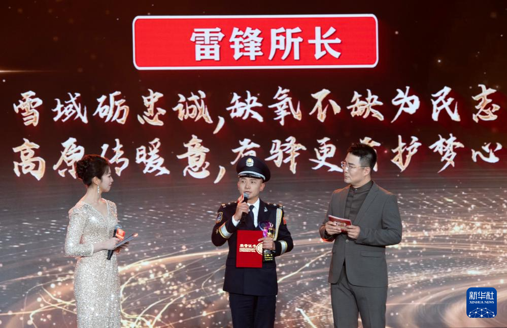 1月28日,由新華社主辦的“中國網(wǎng)事·感動2025”公益盛典暨年度頒獎典禮在北京舉行,活動揭曉“中國網(wǎng)事·感動2025”十大年度網(wǎng)絡(luò)人物。這是“雷鋒所長”劉鵬(中)出席頒獎典禮。新華社記者 李安 攝